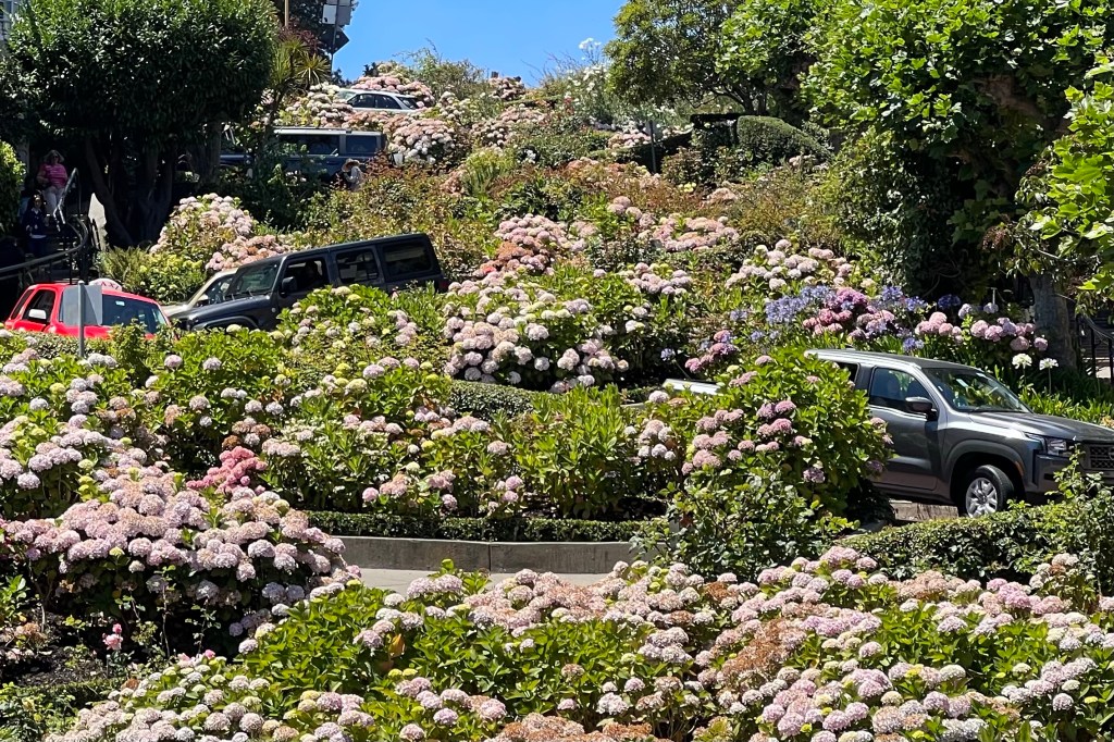 On a marché longtemps sur Lombard Street jusqu’aux huit virages serrés au milieu des hortensias rosés et bleutés, aujourd’hui au bout de leur floraison. Puis on a poursuivi la marche jusqu’à Colombus Avenue avec en ligne de mire la fameuse Transamerica Pyramid. Un stop obligé pour honorer la mémoire des écrivains de la Beat Generation à la librairie City Lights Booksellers et au Vesuvio Cafe. L’esprit n’est plus là, mais il y avait cet homme, au look style SDF, assis au milieu des livres en train de lire de la poésie à voix haute. Il était tout à son texte, passionné, tournait les pages de ses doigts colorés par la crasse, s’encourageant d’un coup de tête au crâne partiellement rasé. Il a lu les quelques cinquantaines de pages jusqu’au bout, puis il s’est levé, à déposer le livre sur le comptoir sous les yeux de la caissière aux cheveux colorés en vert et il est sorti dans la rue.