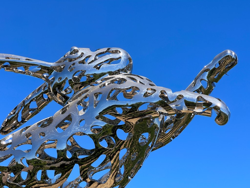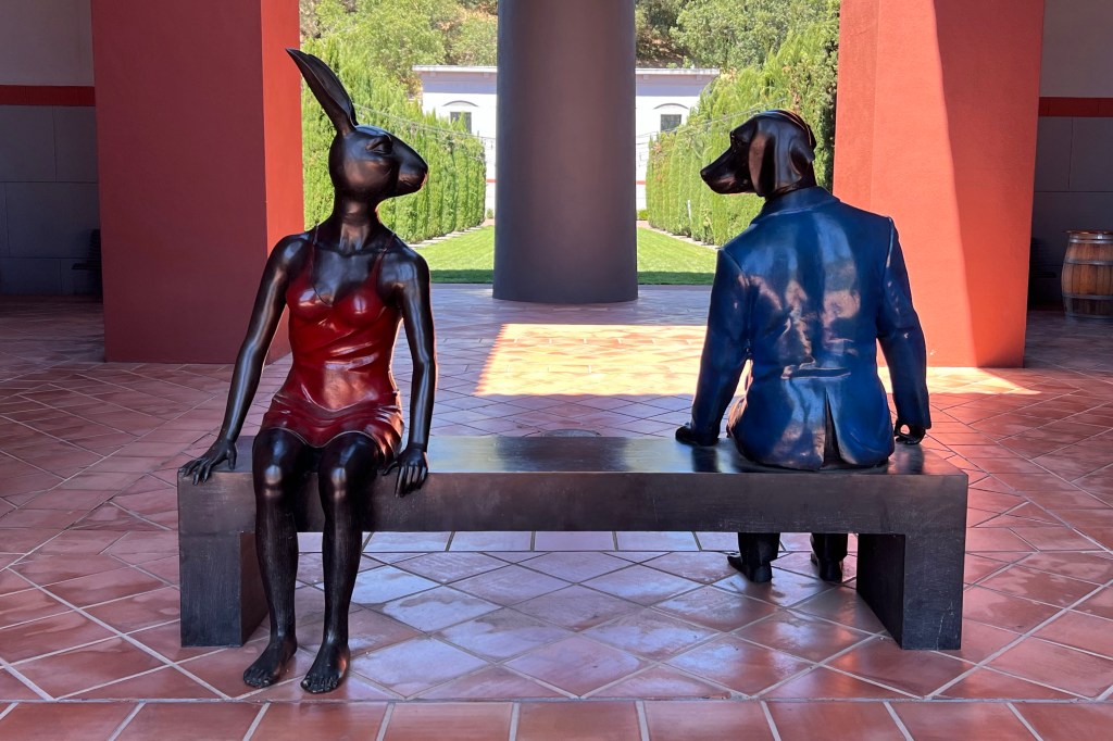 L’œil s’attarde sur des courbures de bronze ou de marbre. Ici, Rabbitwoman et Dogman représentent la célébration de la différence et de l’amitié.