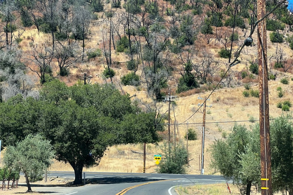 Plus tard, on changera de vallée pour descendre jusqu’à Napa. Paysage de propriétés viticoles bordées d’oliviers, ciel bleu, une vallée qui porte encore les marques des incendies de 2020.