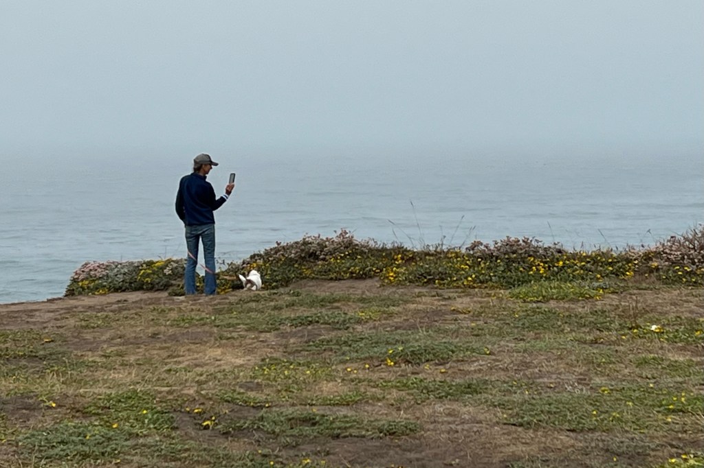 A Flumeville, on bifurque sur la gauche direction Point Arena Lighthouse. Le phare est dans la brume comme une bonne partie de la côte. Entrée : 5$ par personne, on décide de rester sur le parking extérieur. C’est à cet endroit qu’on fait la connaissance de Jean, like jean we wear, précise-t-elle. Elle a 76 ans et voyage depuis le Colorado avec son chien dans un combi T2 VW jaune de 1973 qu’elle a acheté à un Allemand. Jean nous montre son véhicule et précise que l’intérieur et la sellerie sont d’origine. On discute un moment ensemble, elle nous demande d’où on vient, ce qui lui remémore sa venue en France dans les années 80, Paris, Chamonix. Elle explique qu’elle devait rejoindre un groupe de voyageurs en van comme elle au Canada pour descendre le long de la côte Pacifique jusqu’au Mexique durant 12 jours, mais qu’une avarie sur la route ne lui a pas permis d’arriver à temps au rendez-vous. Après 7 jours de mobilisation du van dans un garage, elle a décidé de faire le voyage par elle-même. Avant de se dire au revoir, on se prend mutuellement en photo devant son van.