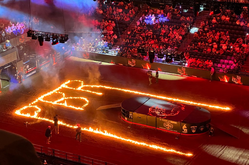 Un peu moins d’une heure de route est programmée pour rejoindre le Honda Center à Anaheim. Ce soir, c’est la grand-messe des cowboys, c’est une étape du championnat des Professional Bull Riders, PBR. Les énormes pickups se rangent, les uns après les autres, en ordre dans les parkings aux abords du stadium. En descendent des familles entières, des couples, des bandes d’amis. Chapeau et bottes de cowboy, chemise à carreaux, jeans et boucle de ceinturon composent la panoplie du public venu très nombreux. Certains fêtent déjà la soirée avec des bières qu’ils partagent à côté de leur pickup en discutant, riant, parfois bruyamment. A l’entrée ouest du Honda Center des groupes de défenseurs d’animaux, mégaphones à la main, ils interpellent les spectateurs qui attendent de rentrer dans le bâtiment, shame on you répètent-ils en boucle. Il sera nécessaire de revenir sur cette question plus tard. La salle est grandiose, le spectacle aussi, impressionnant. Show à l’américaine, feux d’artifice, présentation des équipes en musique, prière du Rider, hymne national revisité, spectateurs debout, main sur le cœur, commentateurs enthousiastes. La recette est parfaite, bien rodée, aucune fausse note. Dans les box, les participants se préparent chacun leur tour avec minutie, c’est tout un rituel observé grâce aux caméras de proximité et à la projection des images sur les écrans dans la salle, concentration extrême, palpable, corde tressée bien ajustée autour de l’animal nerveux pour 8 secondes d’adrénaline. 8 secondes, le temps d’une respiration, une éternité pour d’autres. Le public est conquis, crie, hurle, siffle, encourage les riders. La porte s’ouvre, les secondes défilent au compteur, trouver son rythme, se maintenir en place grâce au bras en lien avec l’animal, l’autre bras comme le corps en balancement permanent en recherche d’équilibre.