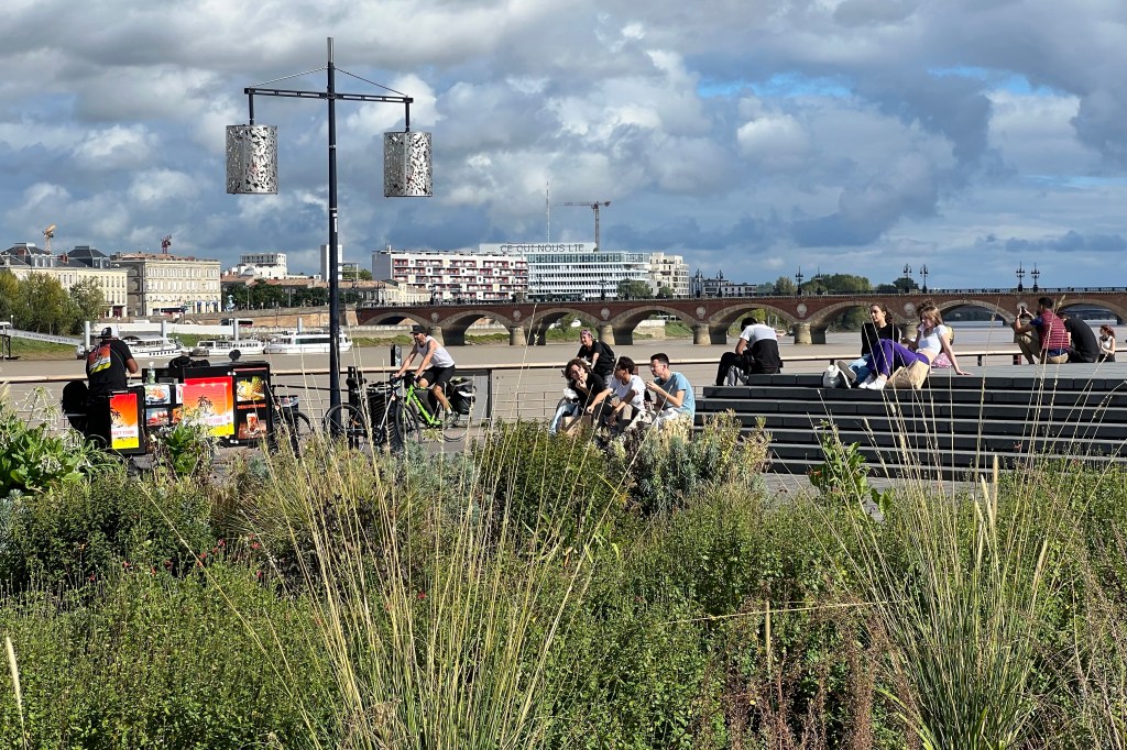 Il fait encore nuit lorsque je ferme la porte de la maison, et sur le trajet en allant vers le tram D le ciel s’éclaircit peu à peu. Les trottoirs sont toujours aussi défoncés. Je croise une personne, avenue du 8 mai 1945, ce n’est pas le petit homme à la casquette blanche, il ne dit pas bonjour. Ici, on ne dit pas bonjour quand on se croise dans la rue, chacun garde ses distances. L’indifférence dérange, développe la gêne. La chaussée est mouillée, le ciel bas et couvert. Je prends le tram de 7:02, j’arriverai un peu tôt pour prendre le bateau, tant pis, je profiterai de la ville au lever de soleil. Dans la dernière rame du tram, des femmes discutent entre elles, des mots s’échappent de partout dans ce petit volume, impudiques, des bribes de vie – il fera ce qu’il veut.. mais il est tout petit le magasin… c’est Julie… la question ne se pose pas, il n’ira pas… elle n’acceptera pas… elle a envie d’avoir un enfant, ça tombe bien. Aux Quinconces, je décide de descendre malgré quelques gouttes de pluie, petites perles transparentes sur les vitres du tram. Je fais un détour par la place de la Comédie, j’ai du temps. Et puis, revoir Sanna, lui dire à demi-mot que j’ai croisé une de ses versions en Californie, qu’elle était belle aussi, plus petite et de marbre vêtue. C’était émouvant. Faire cette connexion, ce rapprochement, transmettre un message improbable. A l’entrée du parking Jean Jaurès, toujours le même SDF qui dort enroulé dans une couverture. Le jour s’est maintenant levé. Il n’y a personne sur les quais, seuls des agents de nettoyage, quelques vélos. Le BatCub arrive. Revoir le fleuve, l’approcher, naviguer 4 minutes sur ses eaux boueuses, me réconcilier peu à peu avec la vie qui reprend ici.
