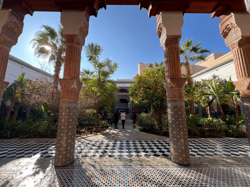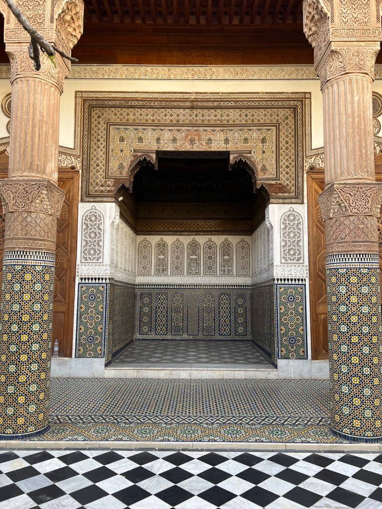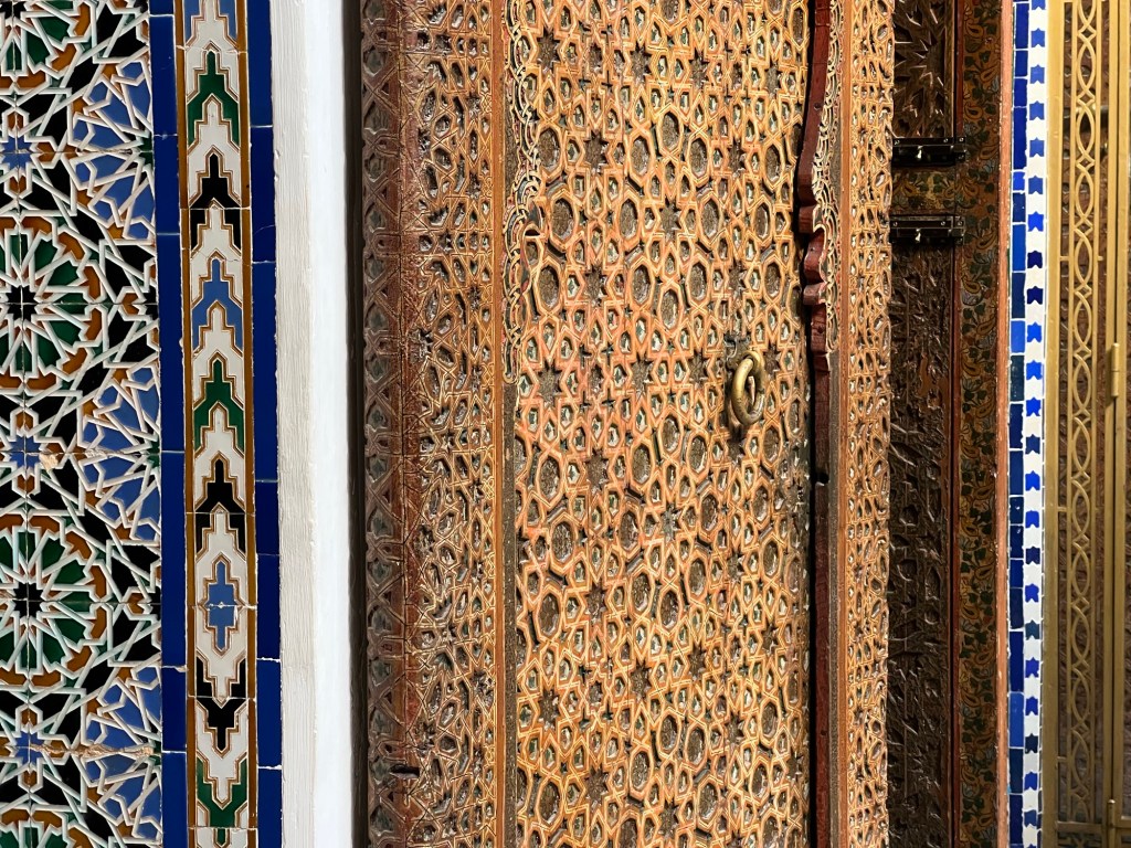 Un ultime Ă©merveillement avant de prendre la route de lâaĂ©roport, le musĂ©e Dar El Bachar. Il Ă©tait fermĂ© en 2022 lors de notre dernier sĂ©jour. Imposant par sa richesse, sĂ©duisant par sa finesse et son harmonie, lâĆil capte toutes les subtilitĂ©s dâun art majestueux. Je suis Ă©tourdie par tant de beautĂ©.
