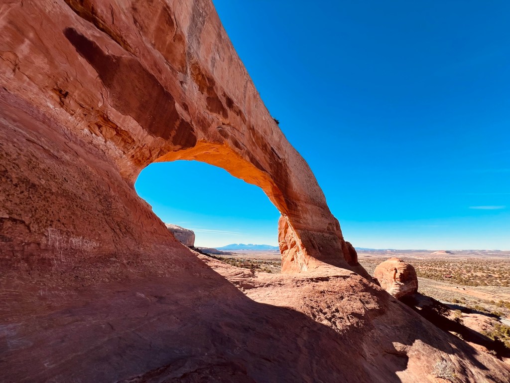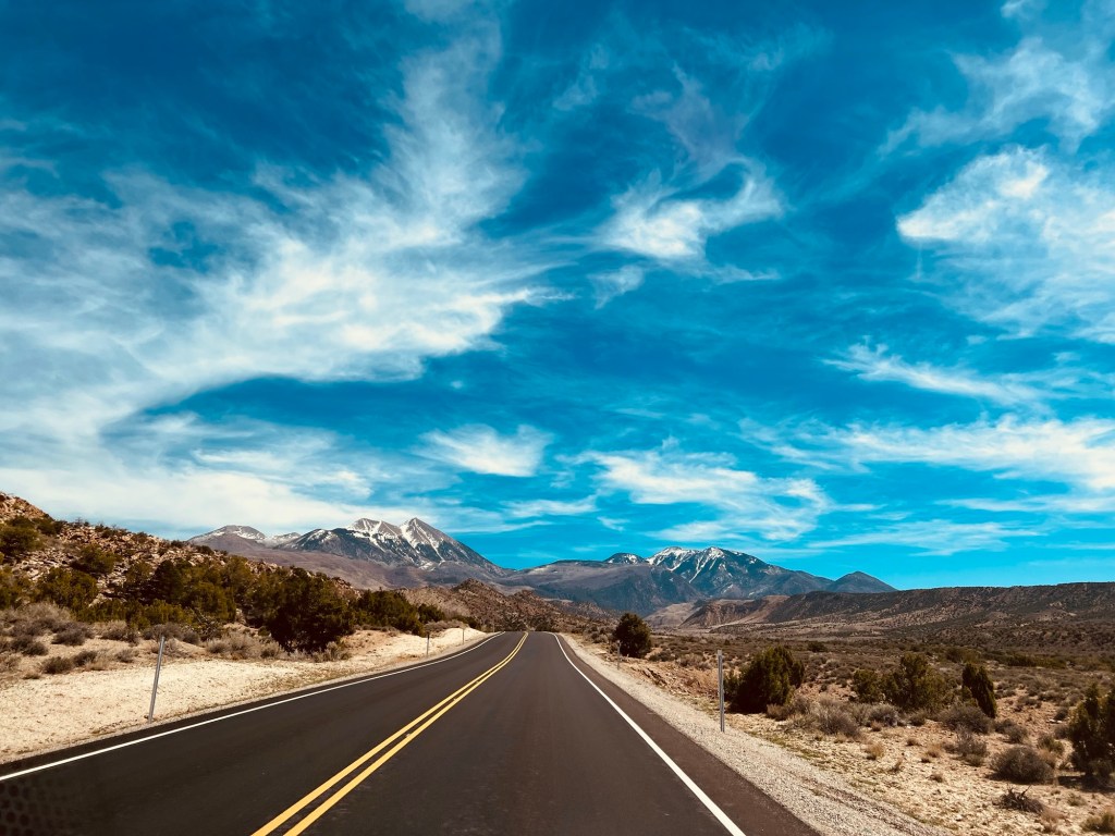 Nous ne sommes quâĂ une heure de Moab, mais dĂ©cidons de profiter de la journĂ©e pour reporter notre arrivĂ©e et profiter de La Sal Mountain Loop Road. Une scenic road de 60 miles que nous atteindrons en prenant lâUS-191 North.