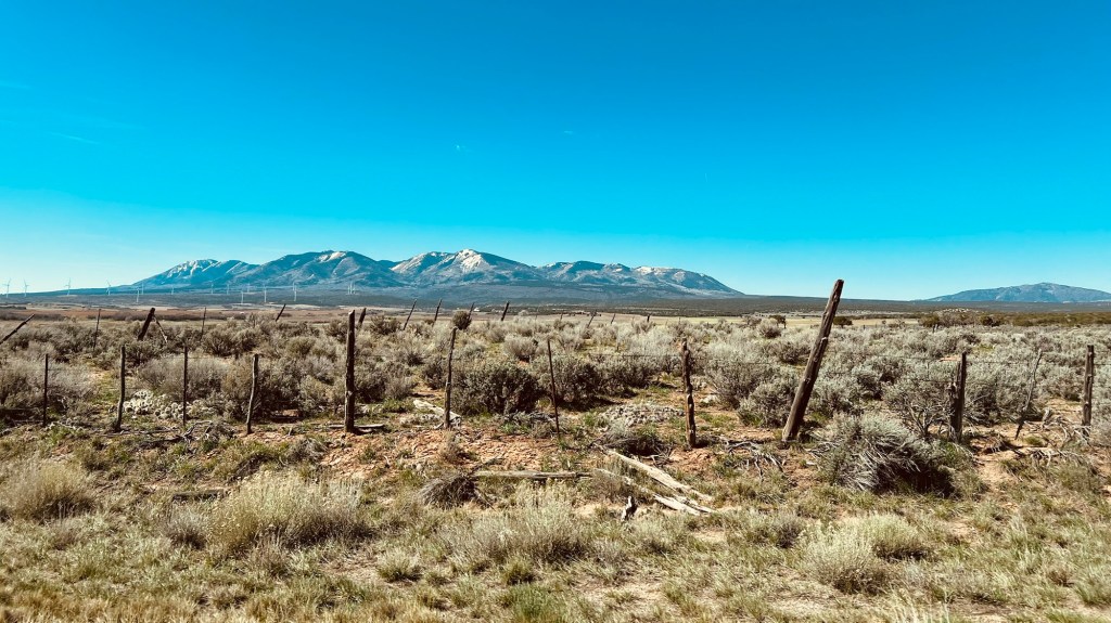 Nous traversons pour le moment Monticello, puis Blanding avant dâatteindre Bluff. Toujours Ă des altitudes Ă©levĂ©es de 2100m, 1600m. Câest une vaste rĂ©gion de plaines sur lesquelles paissent quelques troupeaux de vaches de couleur noire et oĂč quelques parcelles reçoivent des cultures, le reste nâest que terres sauvages.