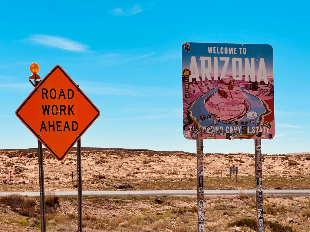 Nous passons la ligne de changement dâĂ©tat et revenons en Arizona en territoire Navajo.