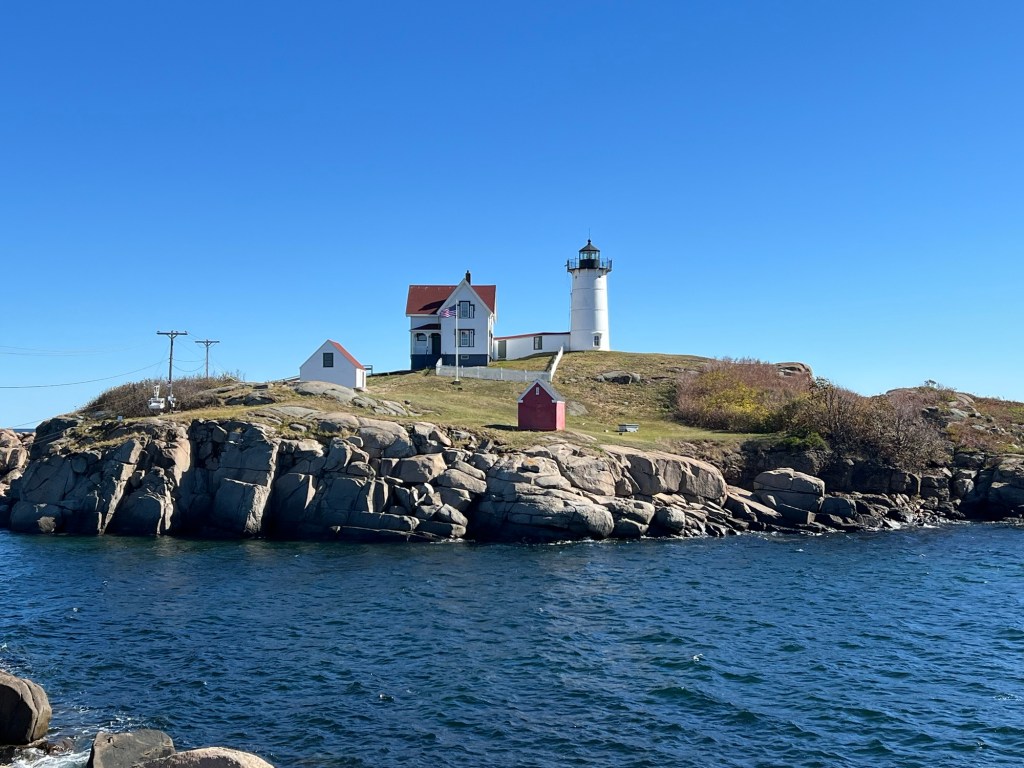 Caché derrière la pointe, le Cape Niddick Lighthouse inaccessible, planté sur son rocher.