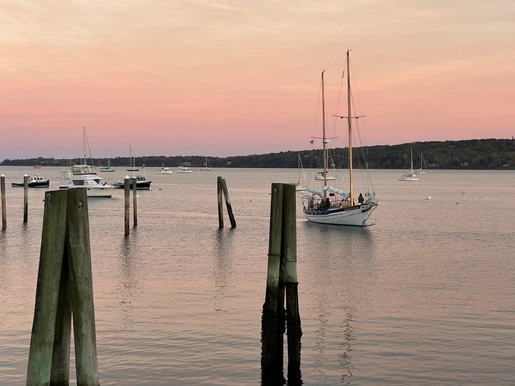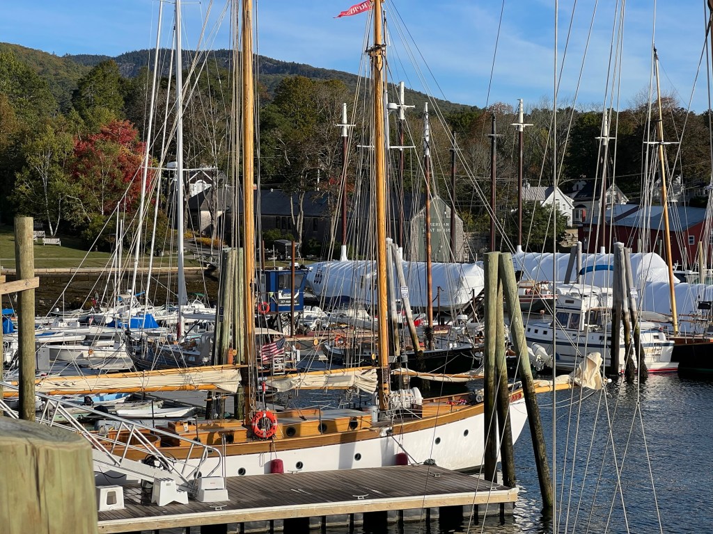 Avant de prendre la route pour Acadia National Park, nous prenons le temps de marcher le long du quai de la petite ville de Camden, puis de profiter de la vue plongeante sur la ville et la West Penobscot Bay depuis le Mont Battie. Ici, le vent fouette nos visages et transperce nos vêtements, il ne fait que 10 degrés ce matin.