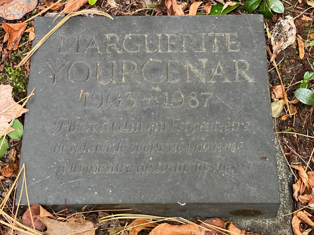 Non loin, le Brookside Cimetery où nous avons cherché les deux pierres tombales. Celle de Marguerite Yourcenar et celle de Grace Frick. Si discrètes que nous aurions pu passer à côté sans les voir.