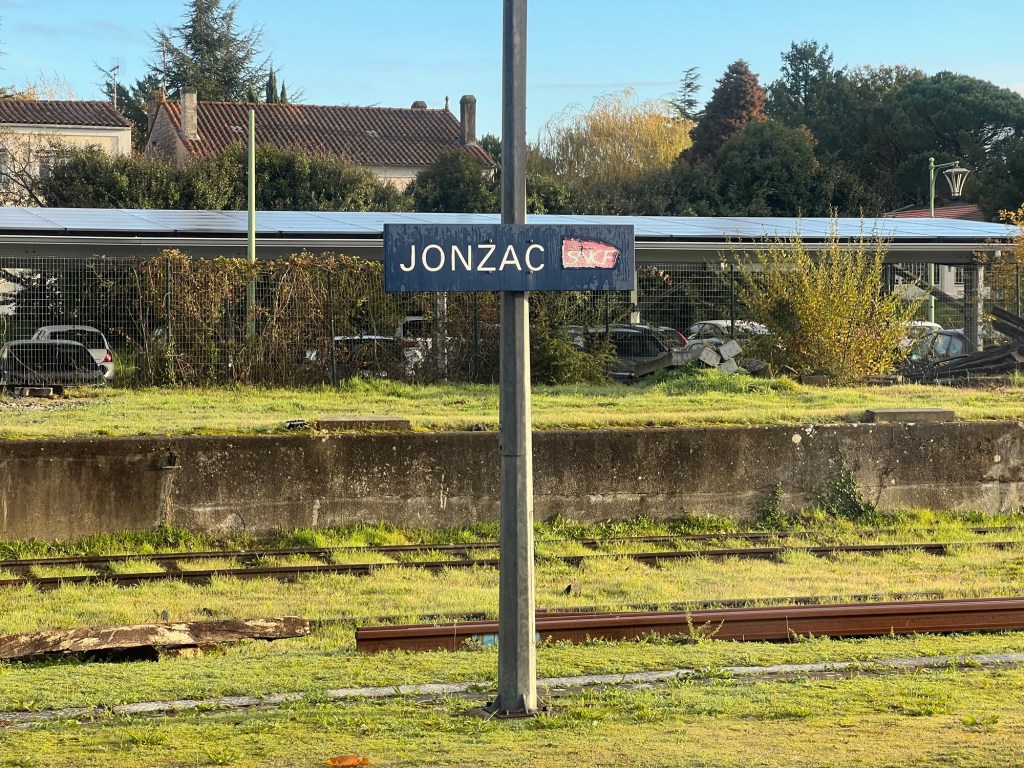 Bordeaux|Jonzac ~ Le jour s’est levé. Je laisse derrière moi la « belle endormie » enveloppée dans un brouillard épais. A hauteur de Saint-Vincent-de-Paul, le pont de fer enjambe la Dordogne, grise comme le temps. Encore quelques pins des Landes sur le tracé de la voie de chemin de fer et au bout de leur cime, entre deux nuages, du ciel bleu. Des vignes, des terres agricoles. Je pense à M. qui a vécu quelques temps sur Jonzac. Je pense à L. qui, plusieurs fois dans l’année, fait ce trajet pour rejoindre le paysage maritime qu’il affectionne. Je pense à tous ces voyages en train qui ont donné lieu à de belles pages de littérature. Et j’ai le cœur léger. La voix enregistrée diffuse dans le haut parleur des informations. Le train entre bientôt en gare de Jonzac.