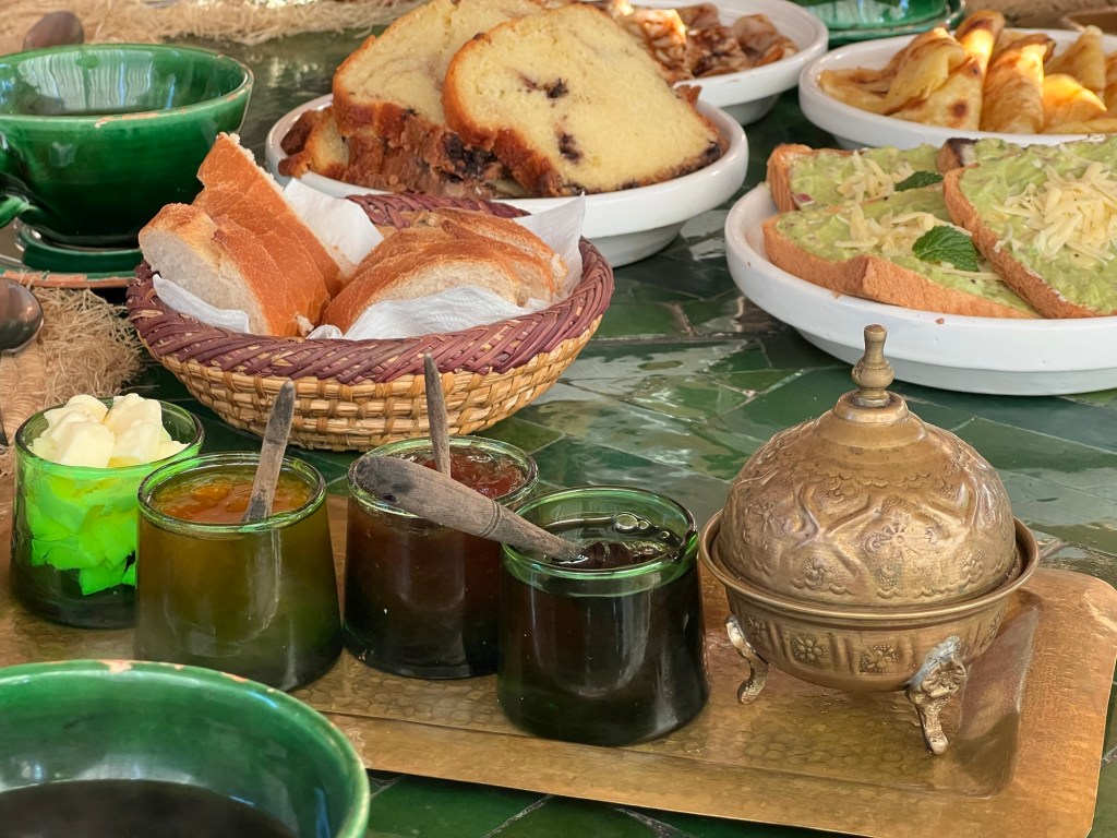 Le régal du matin : un bon petit déjeuner. Galettes marocaines et thé vert à la menthe…