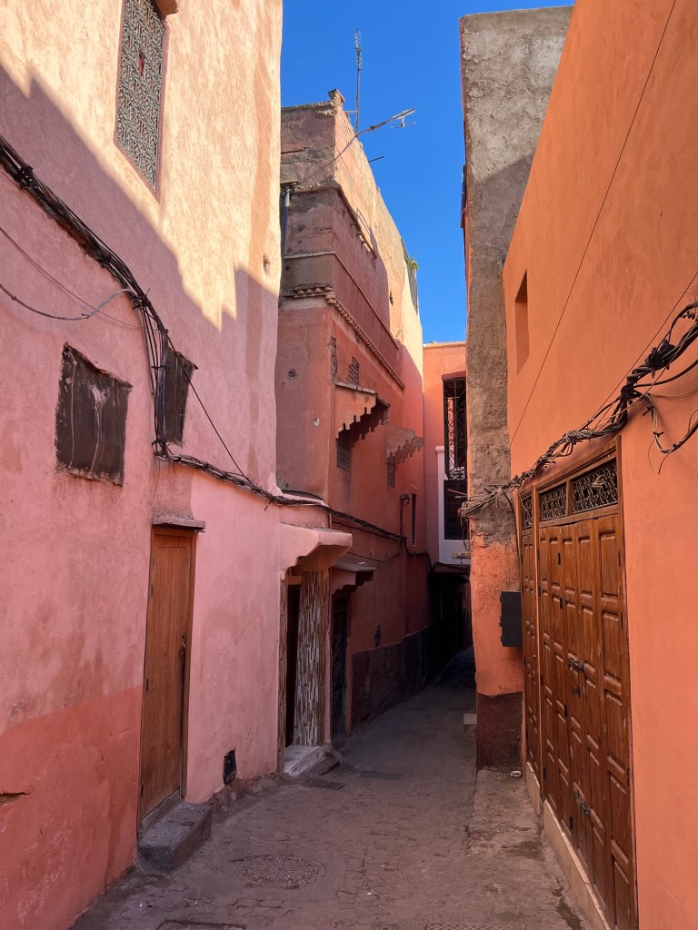 Je marche dans cette ville rouge ocre jusqu’à l’étourdissement. Mon corps se reconnecte à un passé lointain, cette langue que je ne parle pas, ces mots que je ne comprenais pas, ces sons étrangers mêlés à ma langue maternelle résonnent encore en moi comme une mélodie déjà connue.