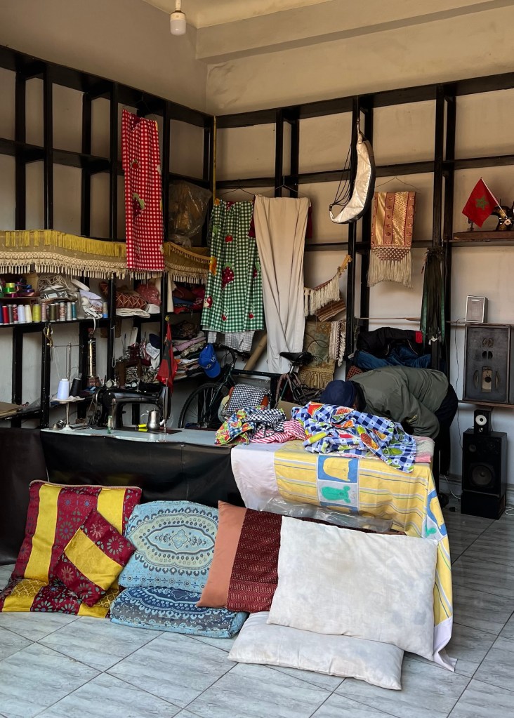 Et puis, c’est une enfilade de ruelles étroites dans lesquelles le soleil fait son apparition, nous aveuglant. Les scooters se faufilent toujours aussi habiles entre les passants. Accélération, coup de klaxon. Les boutiques s’animent, les affaires peuvent commencer. Au coin d’une rue, un café, quelques pâtisseries, un thé à la menthe, petites tables colorées et chaises fantaisies, canapés. Un endroit cosy. Tout le monde s’active, accueille cette nouvelle journée pleine de promesses.