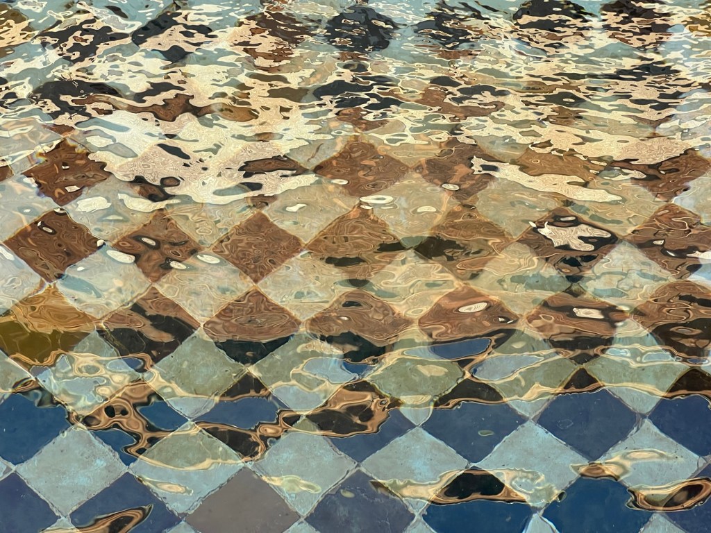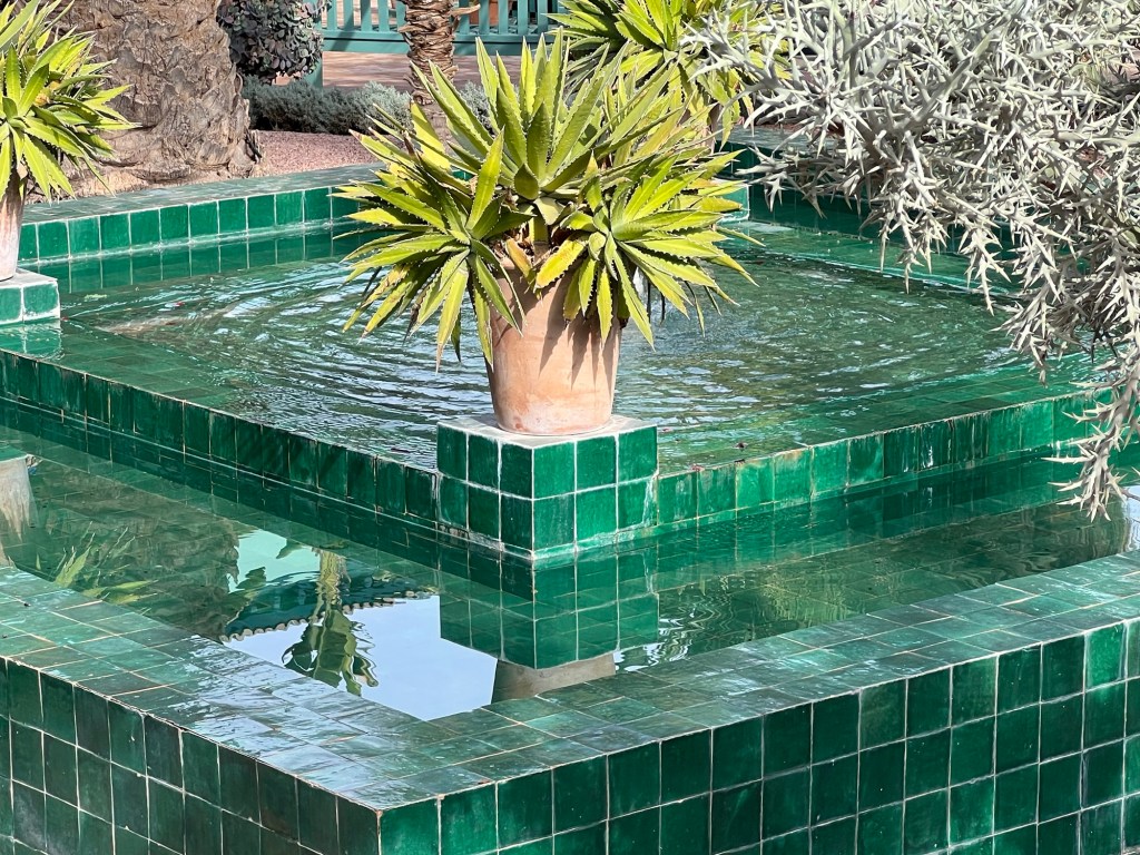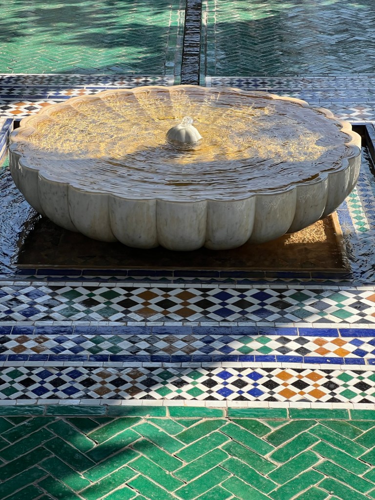 Ici, le moindre recoin est inspirant, raconte une histoire venue de très loin, des monts de l’Atlas, comme celle de l’eau. Ici, beauté des fontaines, des bassins et des allées soigneusement entretenus. Ici, générosité des orangers, citronniers et oliviers. Ici, douceur du soleil hivernal sur les mosaïques.