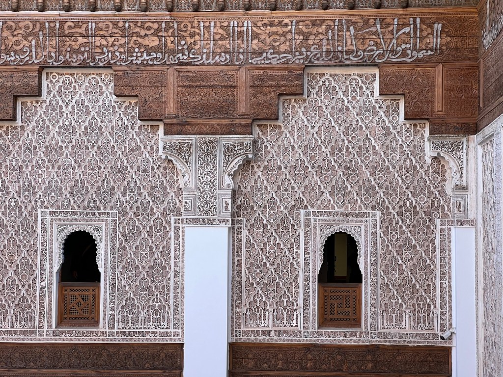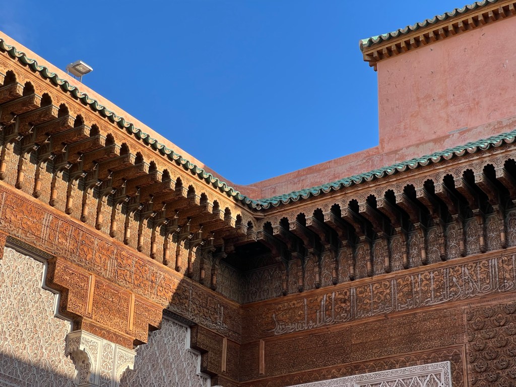 Et puis, l’école coranique, la Medersa Ben Youssef. Une merveille de l’architecturale et le fleuron de la connaissance depuis le XVIe siècle. On arpente les couloirs respectueusement alors que le regard se pose sur les carreaux de Zellige, le bois de cèdre sculpté délicatement. On est séduit par la sérénité et l’apaisement du lieu.