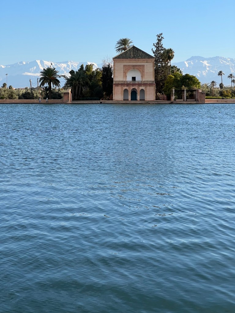 Et puis, après avoir savouré un excellent tajine, la récompense d’une fin de journée dominicale, un autre jardin emblématique, le Menara. Se promener dans cet espace de carte postale, ce bassin immense face aux montagnes enneigées de l’Atlas sous un soleil déclinant. S’asseoir face à cette offrande, laisser son esprit se perde, apprécier.