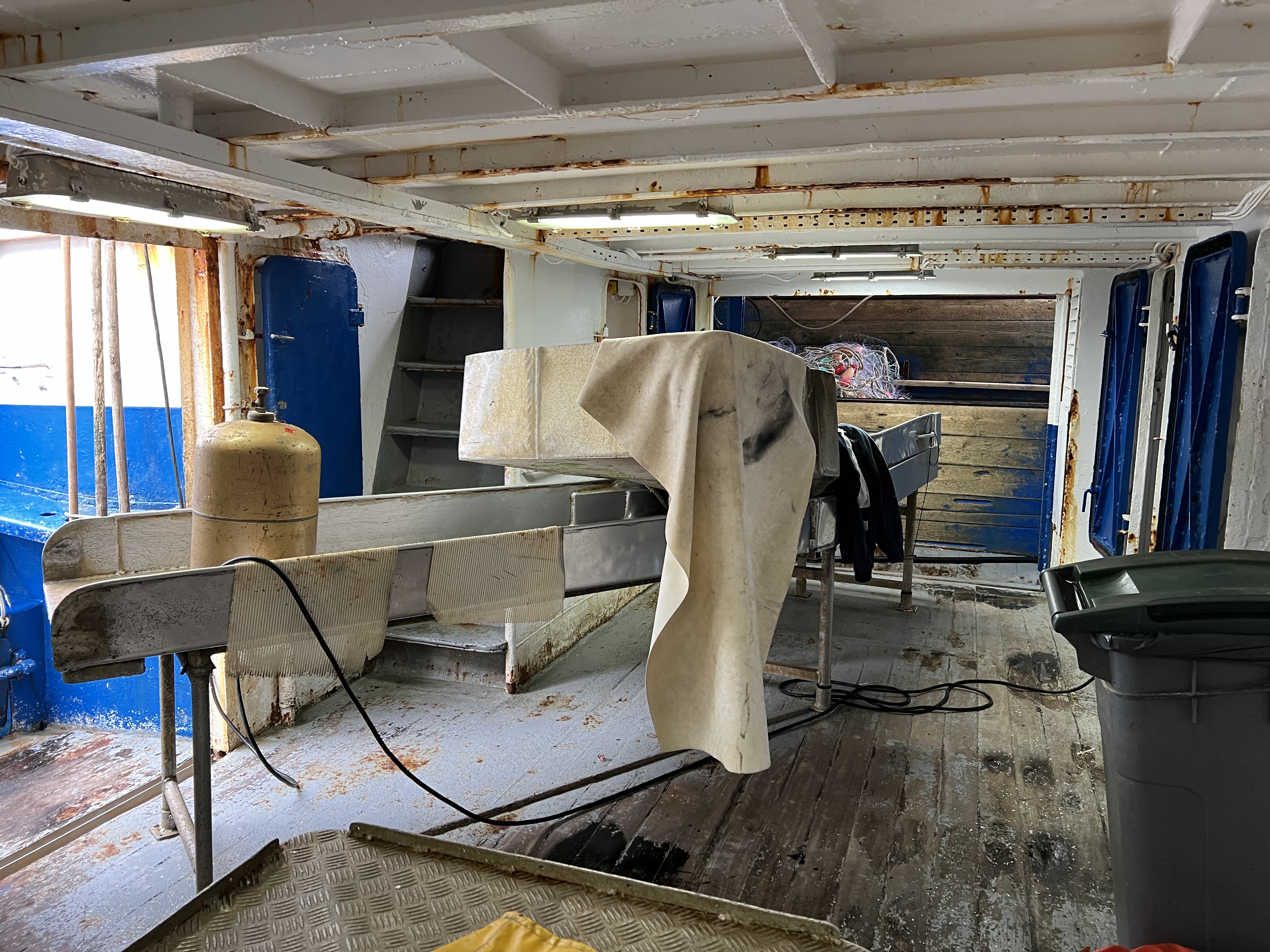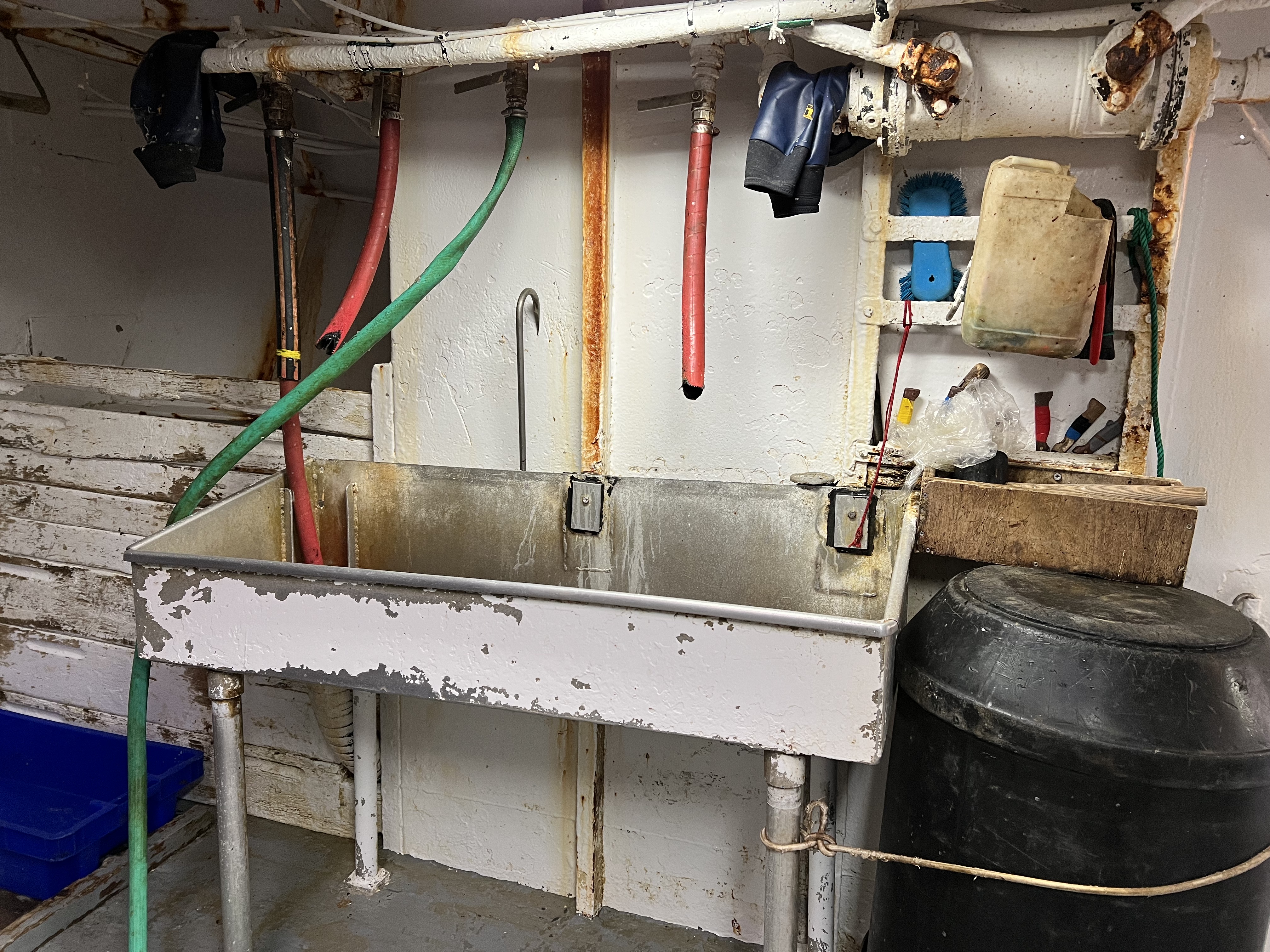 Un garage ouvert sur l’inconnu, des objets familiers, la courbe arrondie de la porte d’une machine à laver, des produits ménagers, l’ombre d’un évier, un vélo de ville, comme un début d’intimité d’un espace deviné, capté à la dérobée. Là où l’on rentre par un lieu détourné, une antichambre, un entre-deux qui projette ce que l’intérieur pourrait être, c’est-à-dire pas grand-chose, car peu d’éléments en indice si ce n’est la présence de cet évier. Le fait que certaines choses ne rentrent pas dans l’habitation, la propreté s’envisage en partie en dehors. Le linge et cette possibilité qu’on se donne de choisir quoi nettoyer dans l’évier du garage. Et puis, cet espace vide au milieu, sans doute pour abriter une petite voiture.