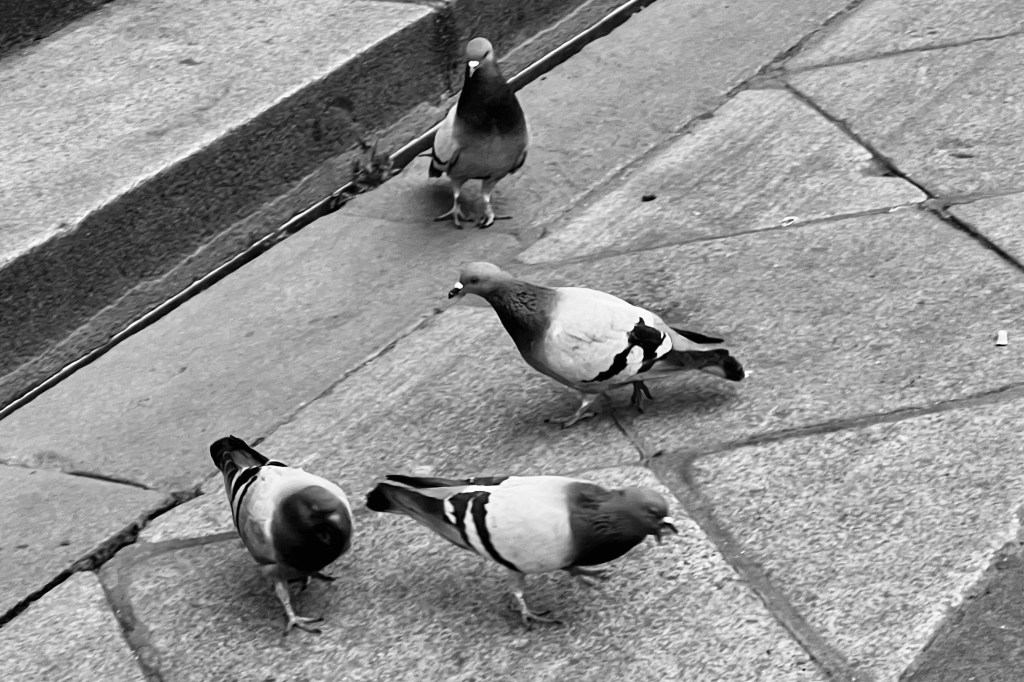 Au coin de la rue, le sol maculé de multiples taches blanches. Si ce n’étaient des déjections d’oiseau, on aurait pu croire à un tableau artistique sur fond noir. Quelques mètres en amont, j’avais croisé le petit homme à casquette blanche vêtu d’un bermuda ample de couleur beige, sourire timide, édenté. L’atmosphère chargée en humidité colle à la peau. Sensation désagréable.