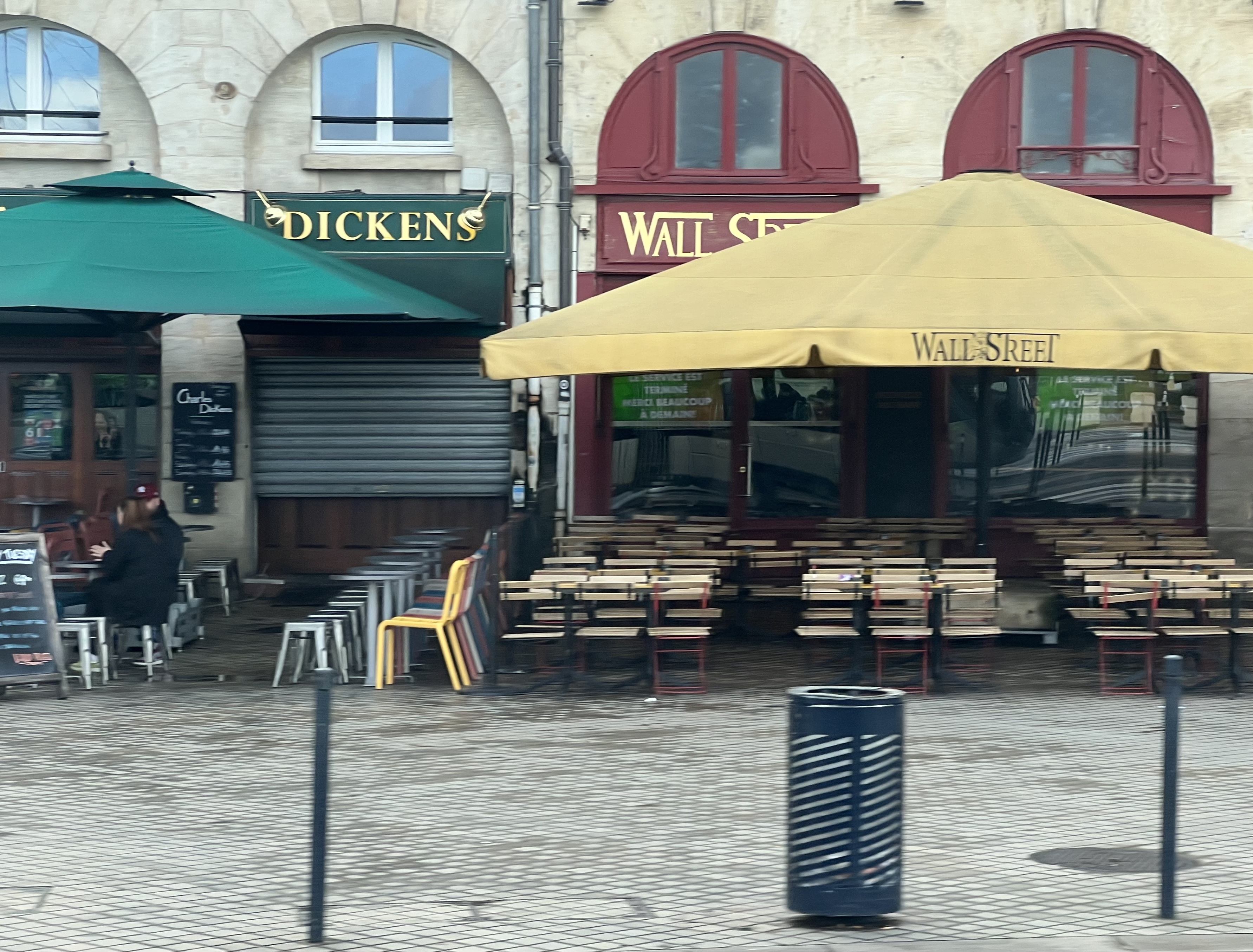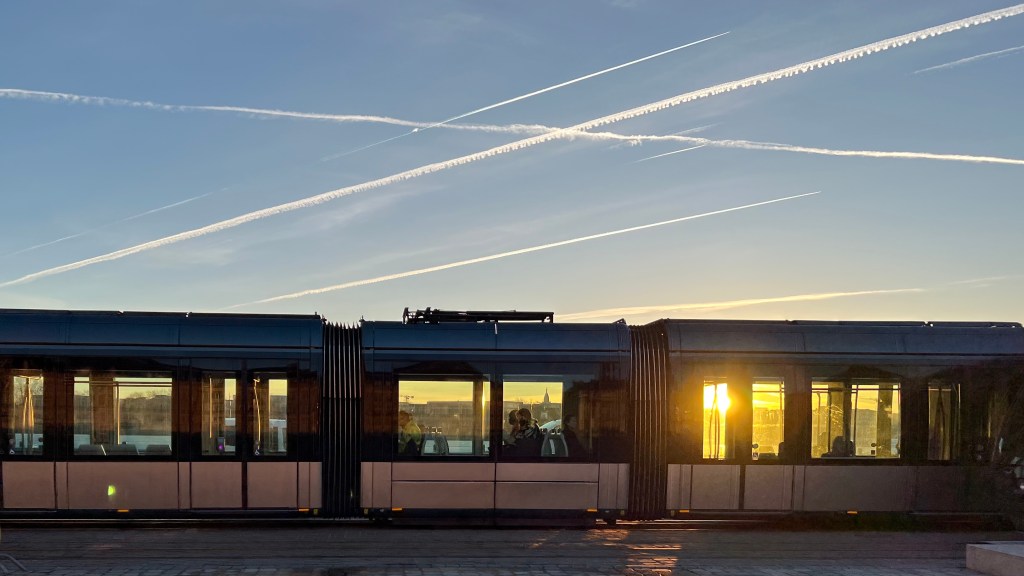 Dans l’attente du tram, le regard se promène sur un paysage urbain usé au quotidien et pourtant, à chaque fois, c’est une redécouverte parfois étonnante. Je suis des yeux la jeune femme emmitouflée dans un manteau noir, une épaisse écharpe de laine autour du cou, elle ouvre le deuxième parasol sur la terrasse du Cafeincup, celui qui fait un coin dans le quartier des nouvelles résidences à la place de l’ancienne concession Citroën.