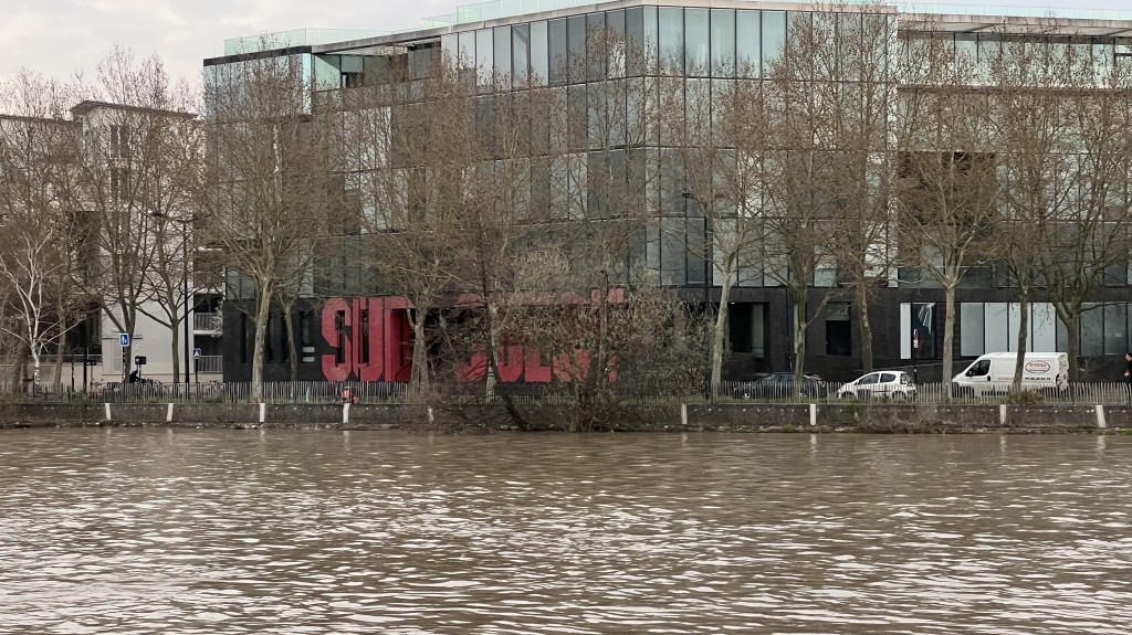 Au matin, profiter d’un rayon de soleil entre deux nuages noirs. Grandes marées, les eaux du fleuve à peine contenues. Et au-dessus de la ville, une fumée noire. L me demande ce que j’en pense. Plus tard, la porte du palais Rohan sera en feu.