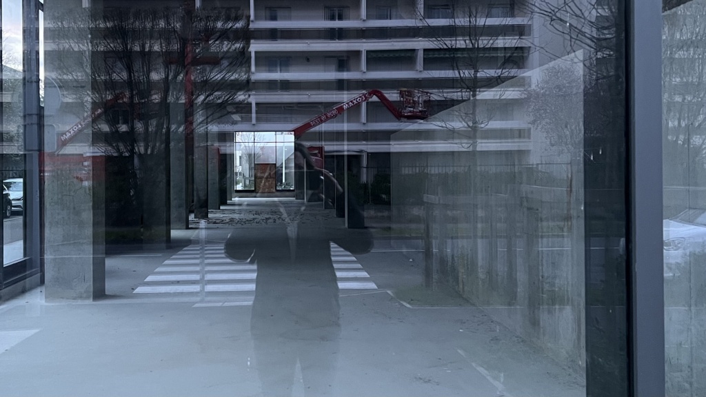 Descendre du tram à l’arrêt Jardin Botanique. Sur le chemin, il y a cette immense construction des studios UB-Soft. Penser au tout début des travaux, la préparation des fondations, et regarder une nouvelle fois dans le trou de la palissade de protection. Une autre étape : la pose du vitrage.