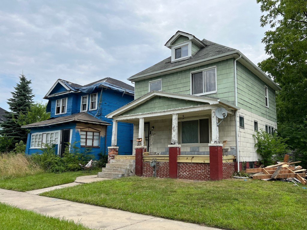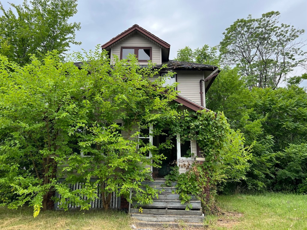 Direction 2514 Lakewood Street. La maison de Marinette la grand-tante de X., aujourd’hui disparue comme la maison. À la place, un espace fermé dans lequel on devine tout et rien à la fois. Le quartier, autrefois un lieu certainement paisible pour vivre a été frappé de plein fouet par la crise de 2013 à Detroit. Ce n’est qu’une succession de maisons délabrées abandonnées à la végétation qui a repris ses droits. Certaines semblent avoir moins souffert, mais c’est une ambiance tendue, un mélange de désespoir et de fatalisme qui règne ici.