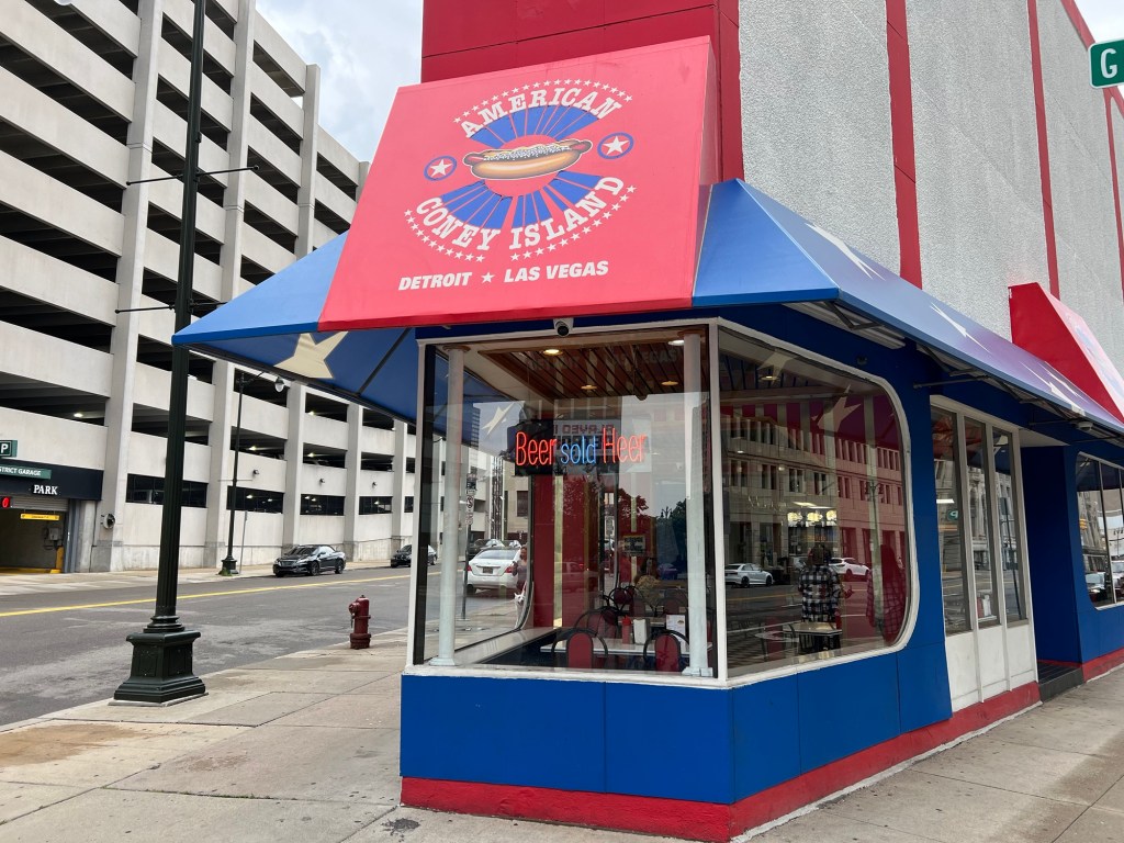 Rejoindre Detroit, le centre ville, sous la pluie. Manger un hot dog à l’American Coney Island. Pas de route 20 par ici, seulement des highways qui quadrillent la ville comme s’il était important de pouvoir la quitter rapidement. Le downtown regroupe quelques blocs. Marcher dans les rues, peu de monde. Essayer de saisir l’identité de la ville.