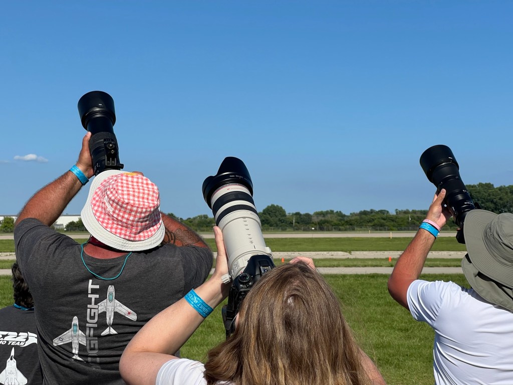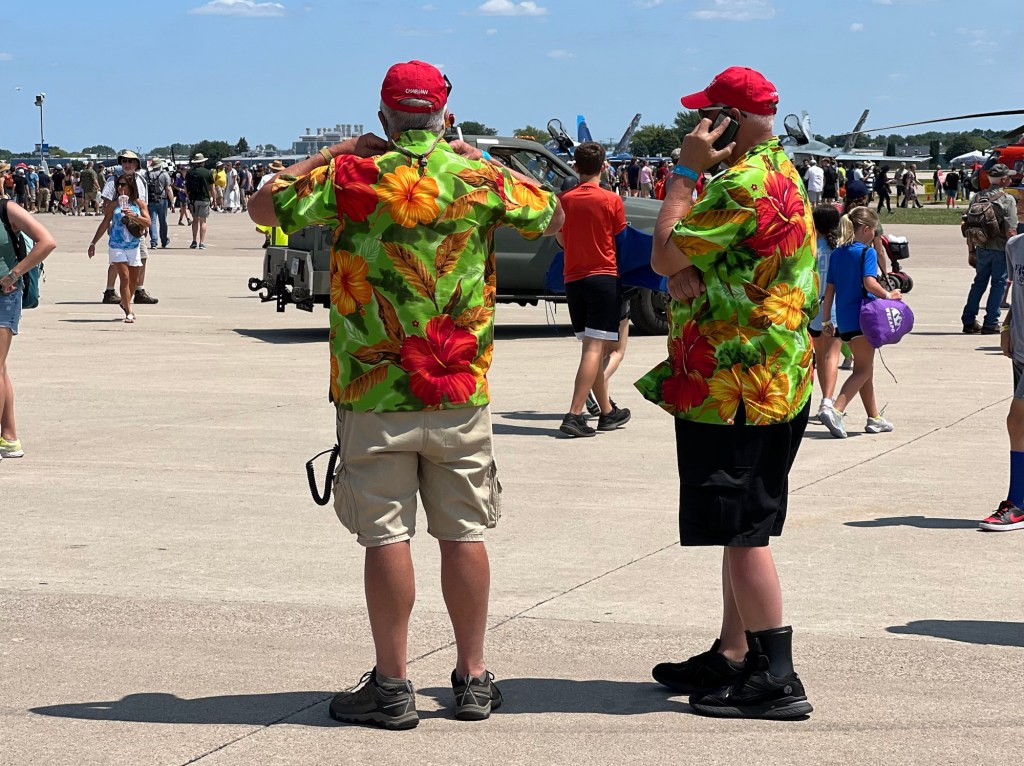 Un nombre vertigineux de spectateurs est attendu sur plusieurs jours, mais la circulation reste fluide. On est orienté dans un des multiples parkings, placé par un jeune bénévole et un bus attend pour nous conduire à l’entrée de l’aéroport régional Wittman. On y est !