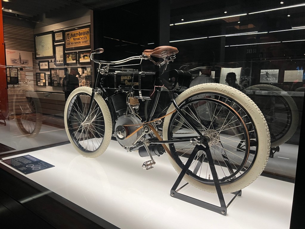 Ce musée est magnifique, incroyable ! De la première Harley Davidson en 1903 aux dernières, en passant par celle du facteur, du policier, du soldat et les courses de vitesse… L’esprit Harley règne dans tout l’espace, convivial et passionné. Les bikers sont présents avec leur teeshirt Harley, leur bandana et leur veste en cuir. Sur le parking, ils font vrombir les moteurs, se garent les uns à côté des autres, échangent entre eux leurs expériences.