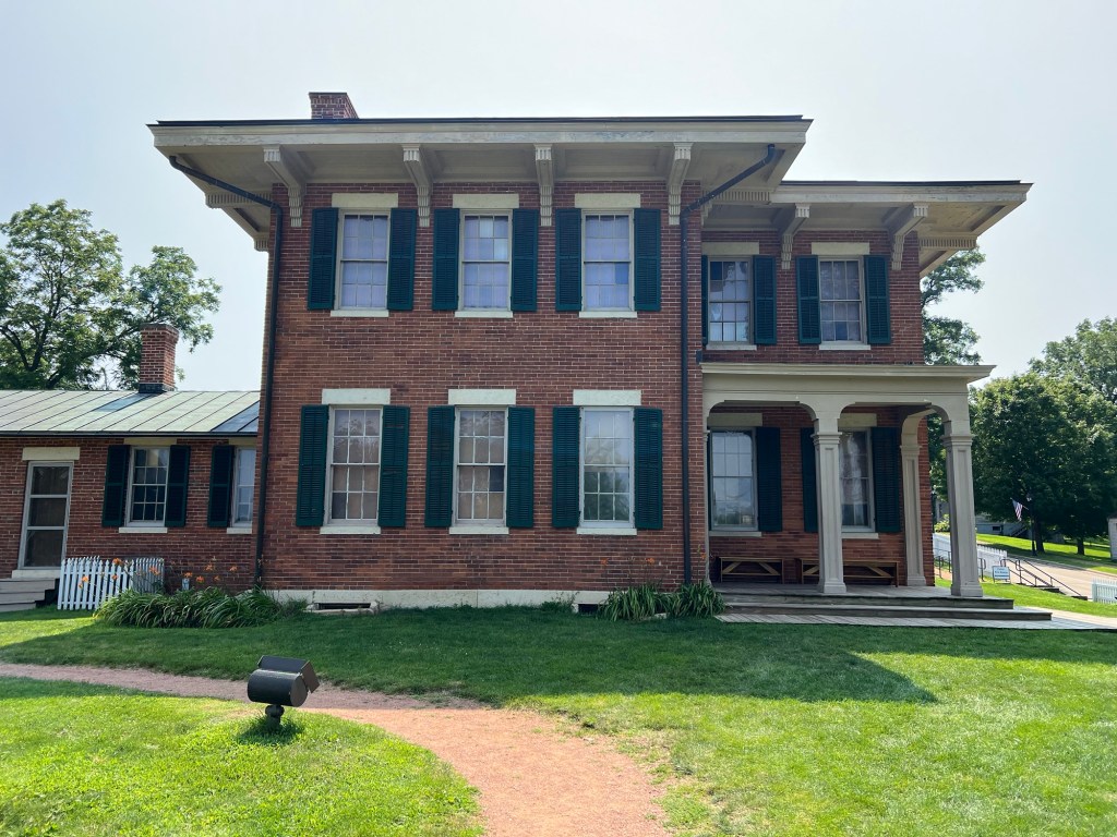 À l’approche de Galena, nous perdons provisoirement les champs de maïs en faveur d’un paysage boisé, plus vallonné. La Mississippi River est toute proche. On se gare à côté de l’US Grant Home. On attend le tour qui devrait bientôt commencer. À côté de nous, une famille de 7 personnes planifie la suite de leur journée.