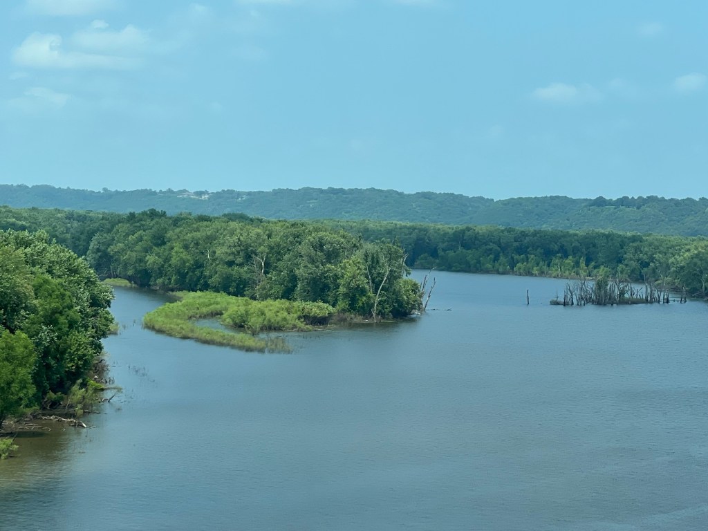 À Dubuque, on rentre dans la ville après avoir franchi le Mississippi et changé d’état. C’est la deuxième fois qu’on traverse ce fleuve. La première, c’était à Saint-Louis (Missouri), il y a deux ans, lors du road trip Route 66.