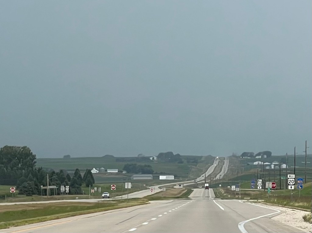 Ce matin le ciel est dégagé, il fait déjà chaud. La 75 est bouchée sur plusieurs miles, elle rallonge le trajet de pratiquement 50 mn. Alors récupérer une route parallèle jusqu’à Toledo et reprendre à l’Ouest sur la 20. Sur la carte, c’est tout droit jusqu’à la destination de ce jour.