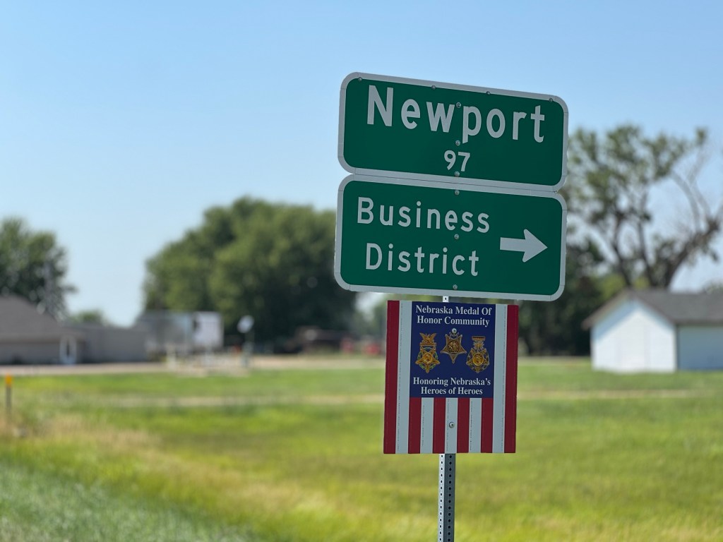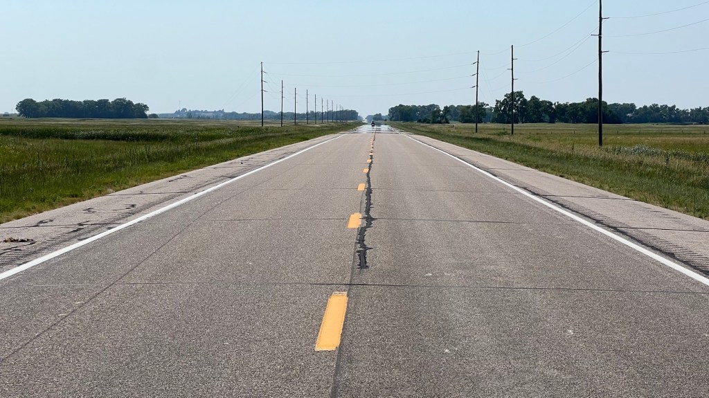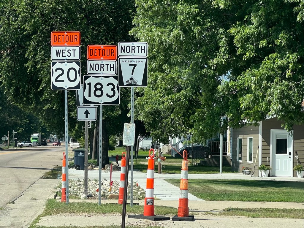 Entre Newport et Bassett, on a atteint la moitié de l’US Route 20. Autour, des fils électriques en bordure de route, des champs, quelques vaches regroupées dans l’angle de la clôture. Il fait 34 degrés. On peut presque sentir la route se dilater sous le soleil brûlant. Aucun panneau pour indiquer le milieu du parcours comme sur la Route 66. Bien dommage.