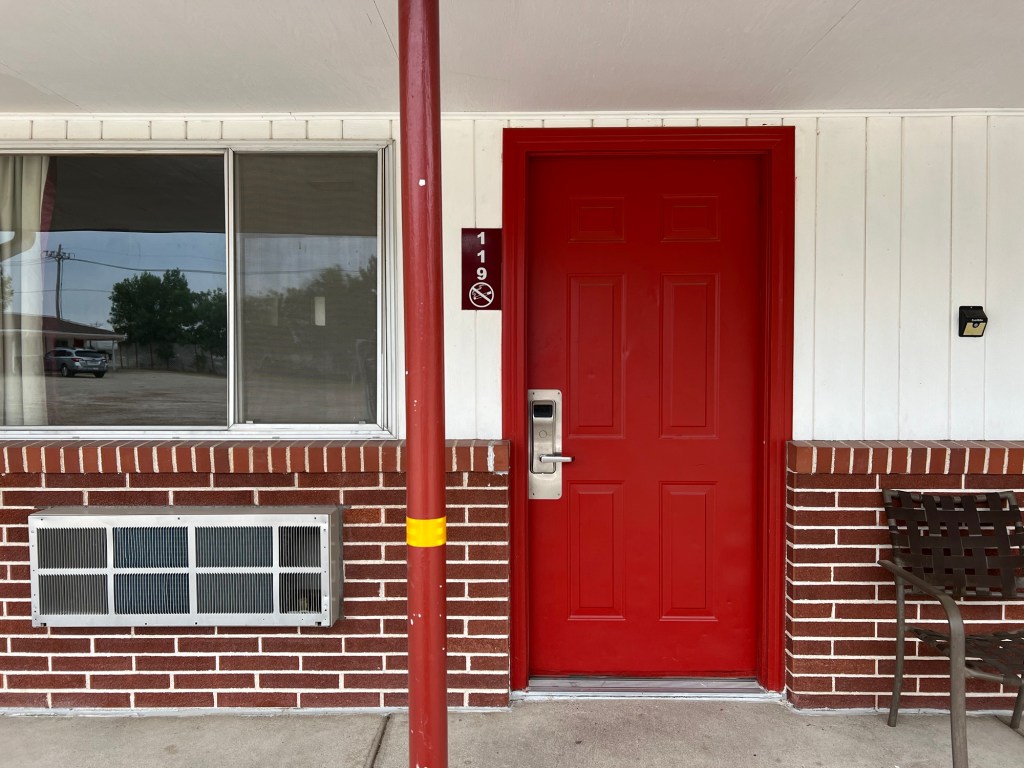 Quitter la chambre 119 du motel et se dire que c’était pour le moment le meilleur dans lequel on a dormi, excepté celui d’Otsego Lake dans l’état de New York. Tenu par un américain dont l’origine ne fait pas de doute, l’Inde, il était équipé de tous les accessoires nécessaires à un bon séjour : frigidaire, micro-ondes, table et fer à repasser, sèche cheveux, local à machine à laver et sèche linge, coin BBQ. À la TV, hier soir, des rodéos. Le ton est donné !