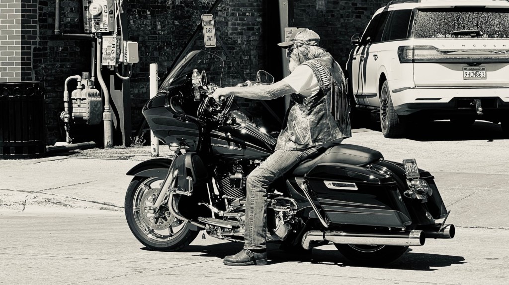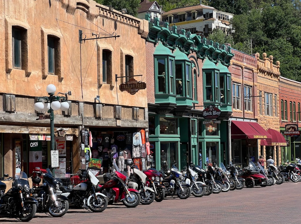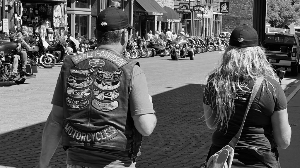 Sur le retour, Sturgis, localité en effervescence. Le 84ème Sturgis Motocycle Rally débute demain pour 10 jours de folie. Après le Harley -Davidson Homecoming que nous avons croisé à Milwaukee, nous baignons dans le monde des bikers made in US.
